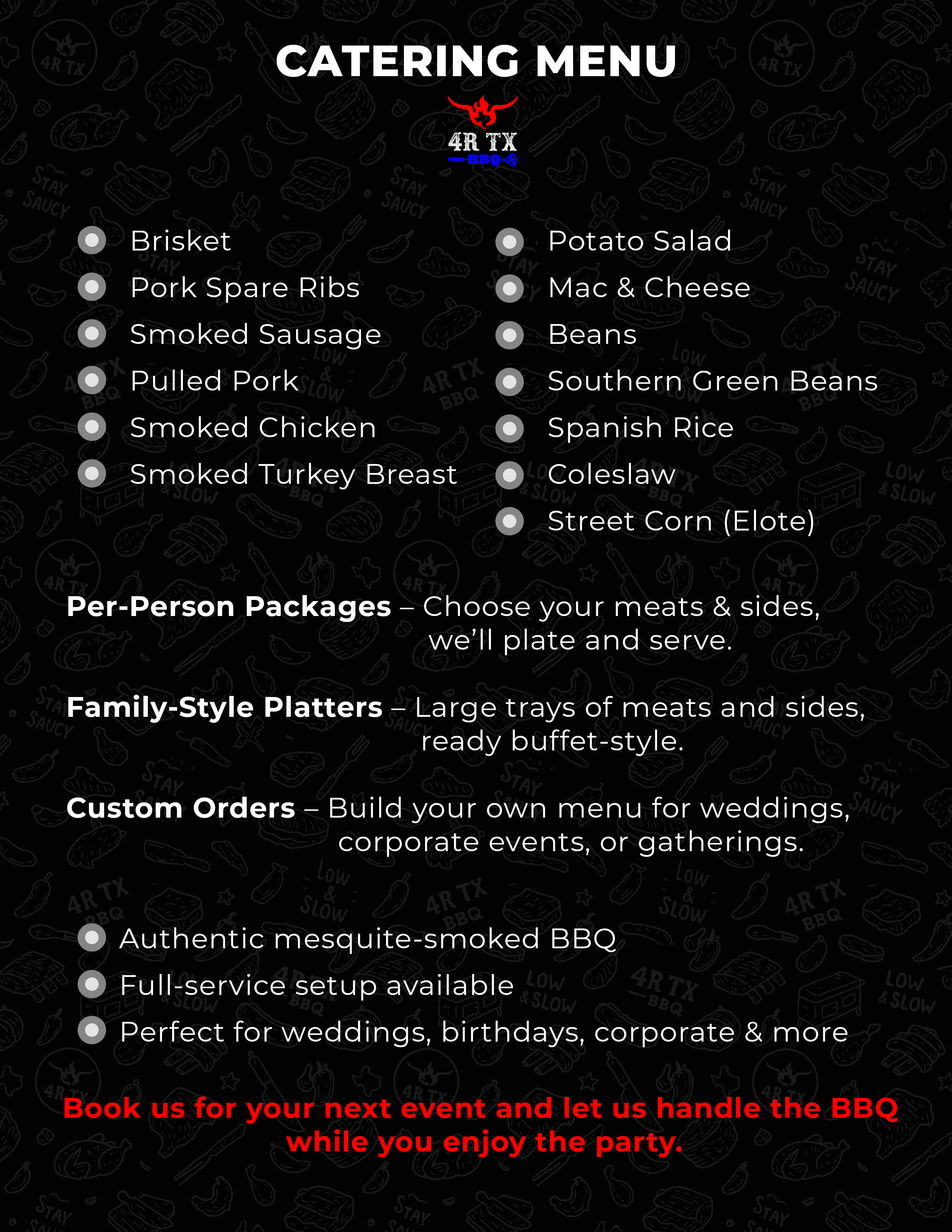 Celebrate Texas Born. Texas Raised. Meat. Smoke. Tradition. with your very own 4R TX BBQ shirt.